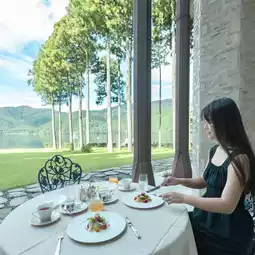 In the morning, we had a spectacular breakfast overlooking Lake Ashi🍽️