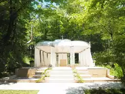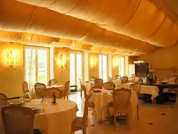The restaurant is built like a castle with a white base.