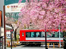 The Hakone Tozan Railway ends at Gora. The weeping cherry blossoms outside the station are the most beautiful messenger of spring. You can also transfer to the mountain cable car here to travel to a higher altitude in the Hakone Mountains.