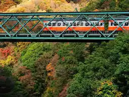 The Hayakawa Bridge between the two stations is the oldest existing railway bridge in Japan. The scenery is particularly magnificent during the autumn leaves season. The train will stop on the bridge for a few seconds to let visitors enjoy the beautiful scenery of the mountains.