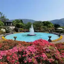 Gora Park, where beautiful flowers can be enjoyed almost all year round, is a famous spot for viewing azaleas. In the park, you can enjoy about 15 varieties and 1,000 colorful azaleas blooming around the fountain