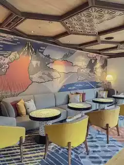 The dining and cafe lounge is a stylish and beautiful space decorated with parquet, which is synonymous with Hakone🫶🏽
