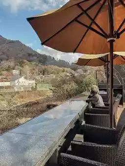 There is also a bar counter-style natural hot spring foot bath overlooking the Hayakawa River💓