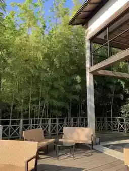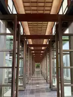 At the end of the long, beautiful colonnade is a moon-viewing platform from which you can view the bamboo forest,