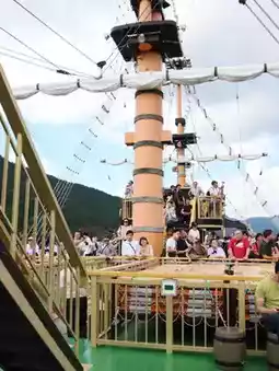 🏖️Environment/Facilities: The Hakone Pirate Ship is located at Hakone Town Port. You can enjoy the scenery of Hakone Lake and the surrounding Mount Fuji by taking the pirate ship. The cabin has a seating area and offers a variety of drinks and snacks. In addition, there are pirate-themed decorations for taking photos, making visitors feel as if they have returned to the pirate era.