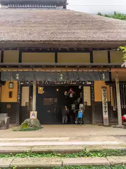 The teahouse, with its characteristic thatched roof, has an atmosphere that makes you feel like you've traveled back in time to the Edo period.