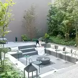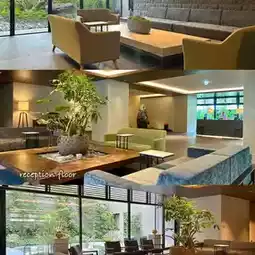 A free space in the center of the accommodation building. The atmosphere is artistic and different during the day and at night. The connected reception floor is also spacious and stylish
