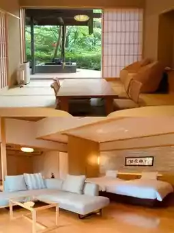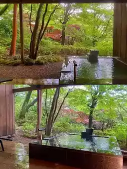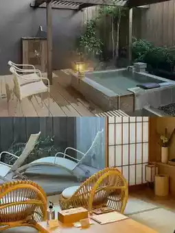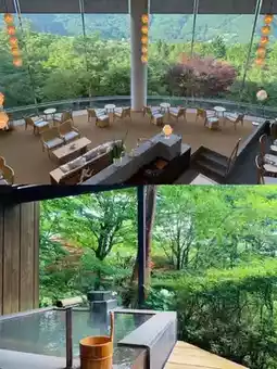 🏨The hotel has a total of 16 rooms, each with its own hot spring♨️, using weakly alkaline sodium salt springs, which can make the skin smooth and translucent. The outdoor scenery and hot springs directly make you forget the fatigue of the journey😪, it's really comfortable!