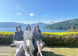 1. Stop 1: From Hakone Shrine, take the bus to Motohakone Station and walk a few steps to see Lake Ashi. The shrine is right by the lake. It is small but quiet and elegant. You can visit and pray for blessings. There are also many blessing packages available for purchase, ranging from 500 yen to 1,000 yen. Remember to bring cash, as other payment methods are not accepted. Then you can go to the lake to see the torii gate in the water.