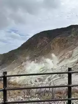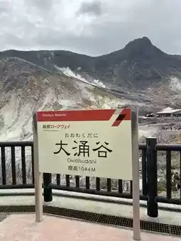 Owakudani, nestled in Hakoneโs volcanic heart, is a place unlike any other. As we stepped off the ropeway, the sharp scent of sulfur hit us. The view of Mount Fuji in the distance was a stunning contrast to the harshness of the volcanic terrain around us.