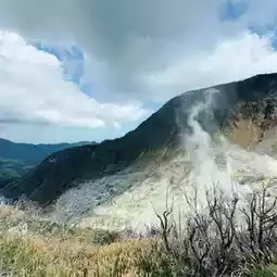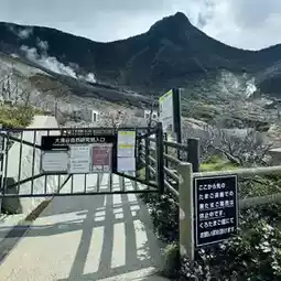 The location of Owakudani is 1,044 meters high. When we arrived, there was a strong smell of sulfur and we saw the volcano was emitting white smoke🌪️