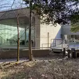 A museum surrounded by nature, including a promenade.