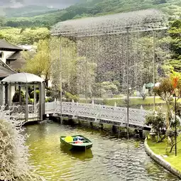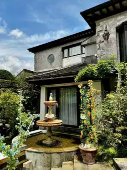 Stunning garden views overlooking Owakudani volcanic valley 🌸🏞️