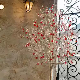 Seasonal flowers combined with sparkling crystal glass art — feels like a dreamy fairy tale!