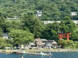 Lake Ashi is a volcanic lake on the shores of Mount Hakone, located in Hakone Town, Ashigarashimo District, Kanagawa Prefecture, Japan. Formed approximately 3,000 years ago, it is the largest lake in Kanagawa Prefecture. Lake Ashi is a popular tourist destination and a renowned spot for viewing Mount Fuji from afar. Sightseeing boats offer cruises on Lake Ashi.