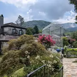 When you hear the word "chandelier," you probably think of an indoor lighting fixture, but the chandelier at Hakone Glass Forest Museum is actually on display outdoors.