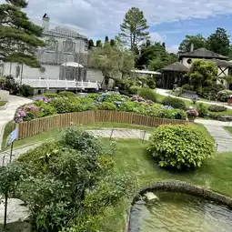 This facility has many artworks, such as crystal arches and glass hydrangeas, that make you worry about typhoons.
