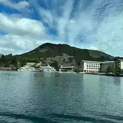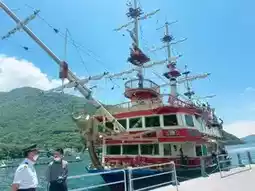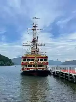 Hakonemachi-ko is a port on Lake Ashi in Hakone. It's the boarding point for the Hakone Pirate Boat, a scenic ferry cruise on the lake. The cruise stops at Hakonemachi-ko, Motohakone-ko, and Togendai-ko. It's the main stop for stunning views of the lake and Mount Fuji. The cruise takes about 25-40 minutes. The boat features 3D art and pirate memorabilia, a fun experience for both children and adults. If you're looking for a change of scenery and a relaxing boat ride with a view of nature, don't miss this.