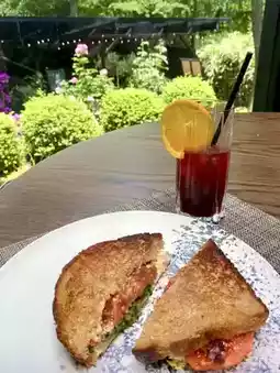 We ordered the BLT sandwich and sangria. Since the weather was quite hot that day, we stayed inside, but the sandwich was honestly one of the best I’ve had—crispy, savory, and packed with flavor. Once our stomachs were happy, we took a slow walk through the garden, soaking in the summer greens, the gentle songs of birds, and beautiful seasonal flowers like hydrangeas. It was the kind of afternoon that fills you with calm and gratitude.