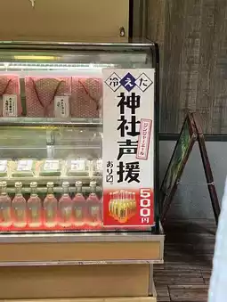 The ginger ale, which is written as "jinja koen," is also popular