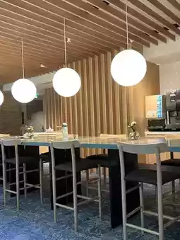 The drink bar and snacks are free, and there is a working space with electrical outlets and manga