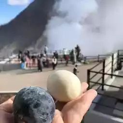 It is a must to buy these onsen eggs and if you do not eat eggs. You can at least take a nice photo with these black colored onsen eggs. The eggs are cooked in the hot spring water and it results in the eggs having black colored shell. This is because of the reaction with sulphur. These onsen eggs are perfectly alright for consumption. There are also other snacks too and one of them is the black color ice cream cone.