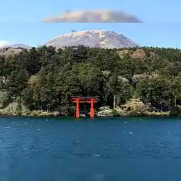 Attractions - Mount Fuji and laketop torii gate view from onboard the cruise ship