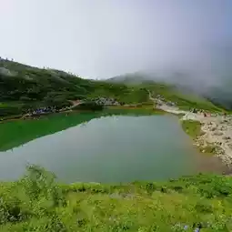 There is a small pond on the mountainside of Happo-one. It is Happo-ike Pond. This pond is famous for its mirror reflection, which reflects the Hakuba mountain range when there is no wind, and many photographers were standing by the pond with their cameras. If you are lucky enough to come on a windless day, you will be treated to a truly beautiful view.