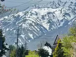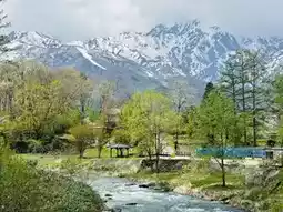 Springtime at Hakuba Oide Park is like stepping into a dream. The distant snow-capped peaks glisten under the sunlight, while the gentle stream flows at your feet. Along the banks, cherry blossoms intertwine with fresh greenery, creating a captivating spring landscape. Every step here feels like walking into a poetic scene of Japan's countryside—serene yet brimming with vitality.