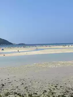This is a rare beach in Jeju where you can feel both fresh water and sea water. The area is large, and it's nice to take a leisurely stroll even if it's not summer. The beach is so beautiful, and the sand is so soft to the touch that it feels like it's going to blow in the wind.