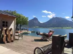 Located just a short distance to the upper left of Hallstatt Lake, this spot offers a closer experience to the lakeside. There are lounge chairs set up by the lake where you can relax and enjoy the sunshine. The Austrian coffee here is highly recommended!