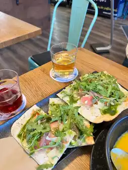 ðThe flat pizza that was a good size for one person was really delicious, and the soup was good for warming up your body when it was a little cold in Hallstatt, which is a little colder than other parts of Austria