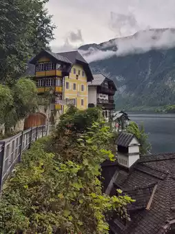 The journey to Hallstatt begins at the lakeside. The serene lake, dotted with small boats, creates a picturesque scene. Hop on a boat to admire the village from the water, where the mountains and lake blend into a breathtaking panorama. 🚤🌿✨