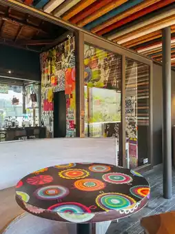 More than 200 fabric panels created in workshops and handmade works using Nordic fabrics are displayed, making it an artistic space that goes beyond the image of a station building and was very cute 😊💛🧡