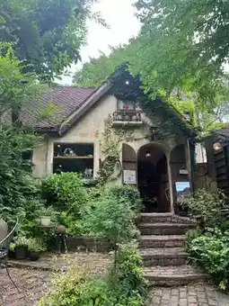 The exterior is a stylish building that looks like it could be found in the English countryside, and it was very photogenic!