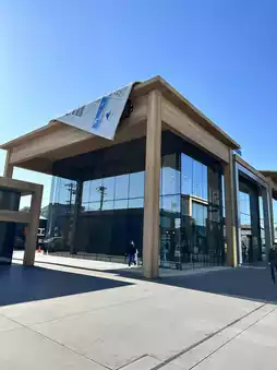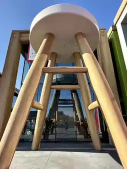 ▶️A unique complex that incorporates gigantic tables and chairs that are about 13 times larger than the real thing, and Unagi Pie paper bag objects into the design