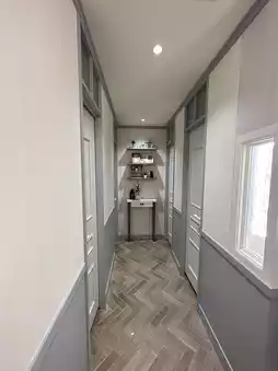 The area around the mirror is bright, making it fun to touch up your makeup.