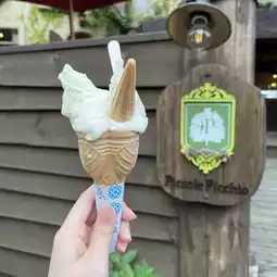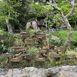 Small shops dotted around the small forest surrounded by tall trees include miscellaneous goods shops, restaurants, gelato shops, etc.