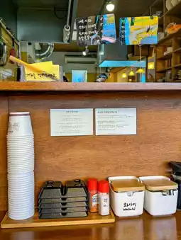 Gimnyeong Bissori is located about a 50-minute drive from Jeju Airport and just 1 minute away from Gimnyeong Beach. The restaurant operates from 11:30 AM to 5:30 PM every day except Tuesdays. There is a parking lot near the Gimnyeong Fishing Village's communal warehouse behind the restaurant. On the day of my visit, it was lunchtime, and the restaurant was quite crowded, so I couldn't capture the entire interior. Including the bar table at the entrance and the tables inside, the restaurant can accommodate up to 18 people.