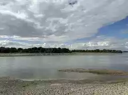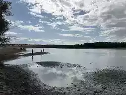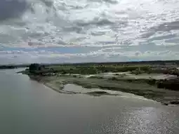 Alright, I've remembered this beautiful scene. Throwing a few stones into the river, we playfully competed to see whose stones could skip further. What a delightful jest!