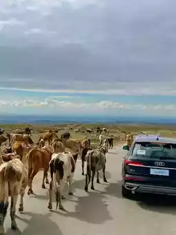 The flocks of sheep and herds of cattle by the roadside are a characteristic of this place, creating an especially harmonious picture. The mentality of food lovers is to slaughter one and roast it for a meal. Coming to Xinjiang, one must not waste their taste buds.