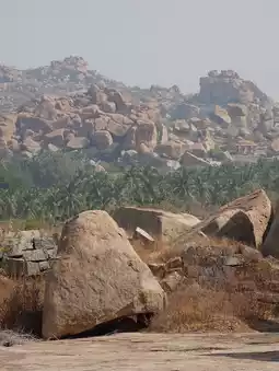 Hampi’s boulder-strewn landscape is a unique and stunning sight to behold. Massive granite rocks, some precariously balanced, form a labyrinth of natural sculptures across the land. These towering formations create an almost surreal, otherworldly setting, making it feel like a paradise for adventurers and nature lovers alike. The boulders rise dramatically against the backdrop of lush greenery and the distant ruins of the ancient city, creating a perfect blend of natural beauty and historical grandeur. Whether you’re climbing the rocks, exploring hidden crevices, or simply soaking in the tranquility, Hampi’s boulder paradise offers an unforgettable experience that connects you to the timeless spirit of the land.
