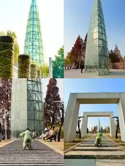 The essence area is concentrated in the right half. It is recommended to enter from the main gate and visit to the right, passing through Han River Bookstore ➡️ Water Bridge ➡️ Fuxing Island ➡️ Fuxing Tower (a pocket version of Shenzhen Spring Bamboo Tower, with a very distinctive shape) ➡️ Sculpture Square ➡️ Main Gate. There is a small free parking lot on the left and right sides of the gate.