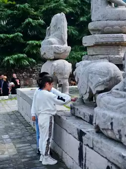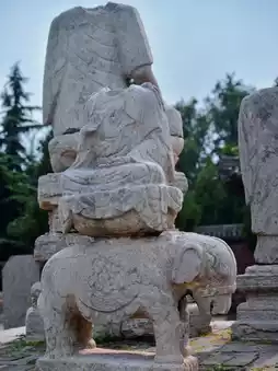Behind the pagoda lies the essence of the entire temple site—a set of stone statues remodeled in the second year of the Zhenyuan era of the Jin dynasty (1154). The front of the statues features the Buddhas of the Three Times with two disciples, while the back has the three Bodhisattvas, each supposed to be riding a divine beast, but due to breakage and loss, they are placed haphazardly on the altar.
