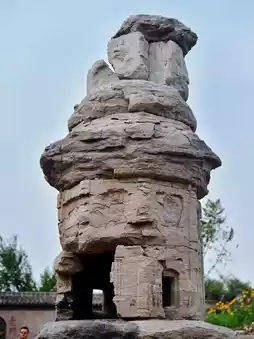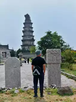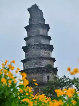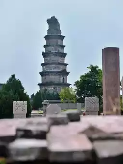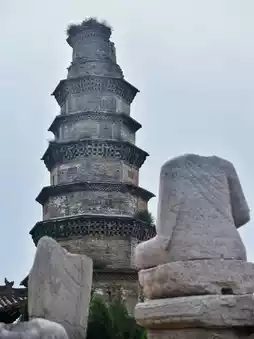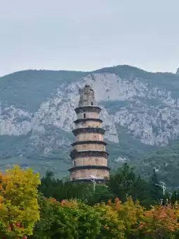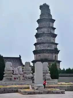 The Song pagoda outside the temple gate, known as the Putong Pagoda, stands out as the tallest structure of Chang Le Temple at the foot of Drum Mountain, where the grottoes are located. The pagoda is elegant and lofty, with an octagonal nine-story pavilion-style design. The alternating single and double-layer eaves feature different styles, showing unique craftsmanship and serving as an excellent example of Song dynasty architecture.
