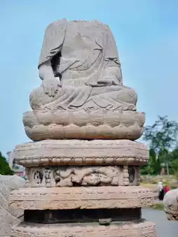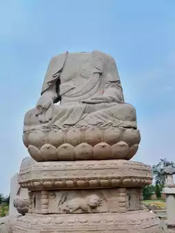 Regrettably, all the heads of the Buddha statues in this group have been lost, but even with only the bodies remaining, they still convey a calming sense of detachment.