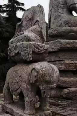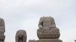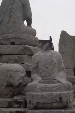There are also fallen steles, scripture pillars, expressionless stone statues, headless seated Buddha statues—