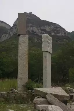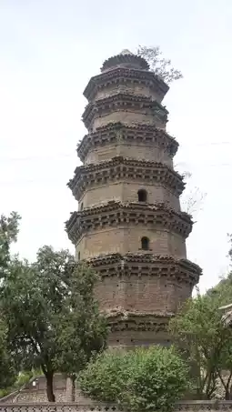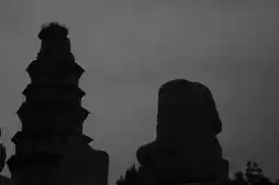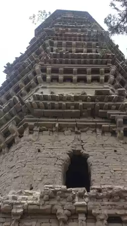 Only a Song Dynasty pagoda remains outside the mountain gate, an octagonal nine-story pavilion, its shape blurred, standing out among the ruins.