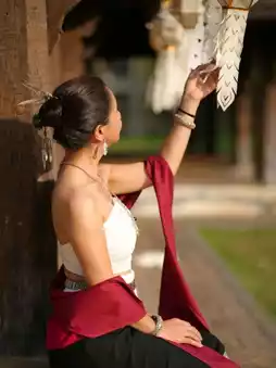 Right in front of the temple, there’s a shop that rents Lanna costumes – the only one in the area. The rental fee includes hairstyling and dressing assistance, although makeup is not included. Wearing the traditional attire really enhances the experience and makes for stunning photos that capture the essence of Lanna culture.