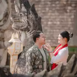This ancient temple feels like stepping into a historical drama. At the front and inside the temple, you can rent traditional Lanna-style outfits for both men and women.